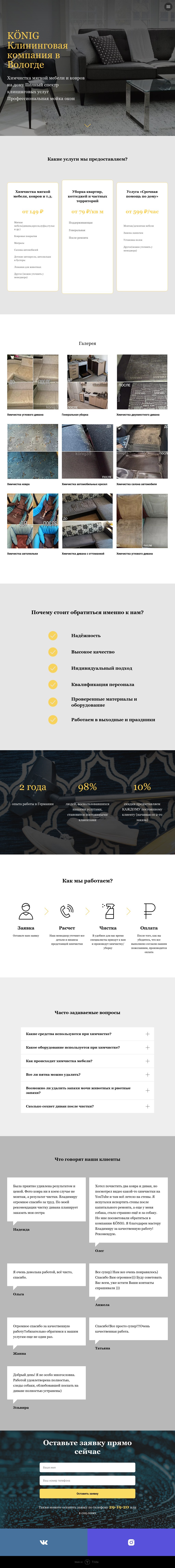 Шикарный Landing Page для элитной клининговой компании KÖNIG. Строгий дизайн. Ничего лишнего.